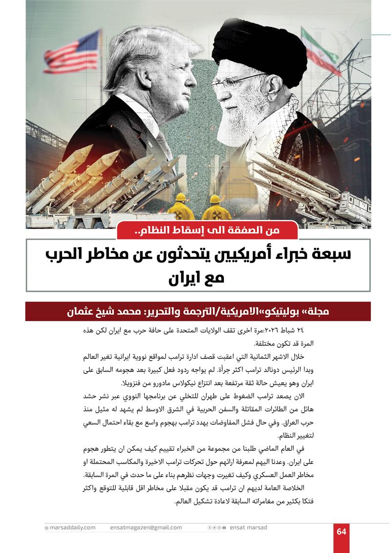 بوليتيكو: سبعة خبراء أمريكيين يتحدثون عن مخاطر الحرب مع ايران