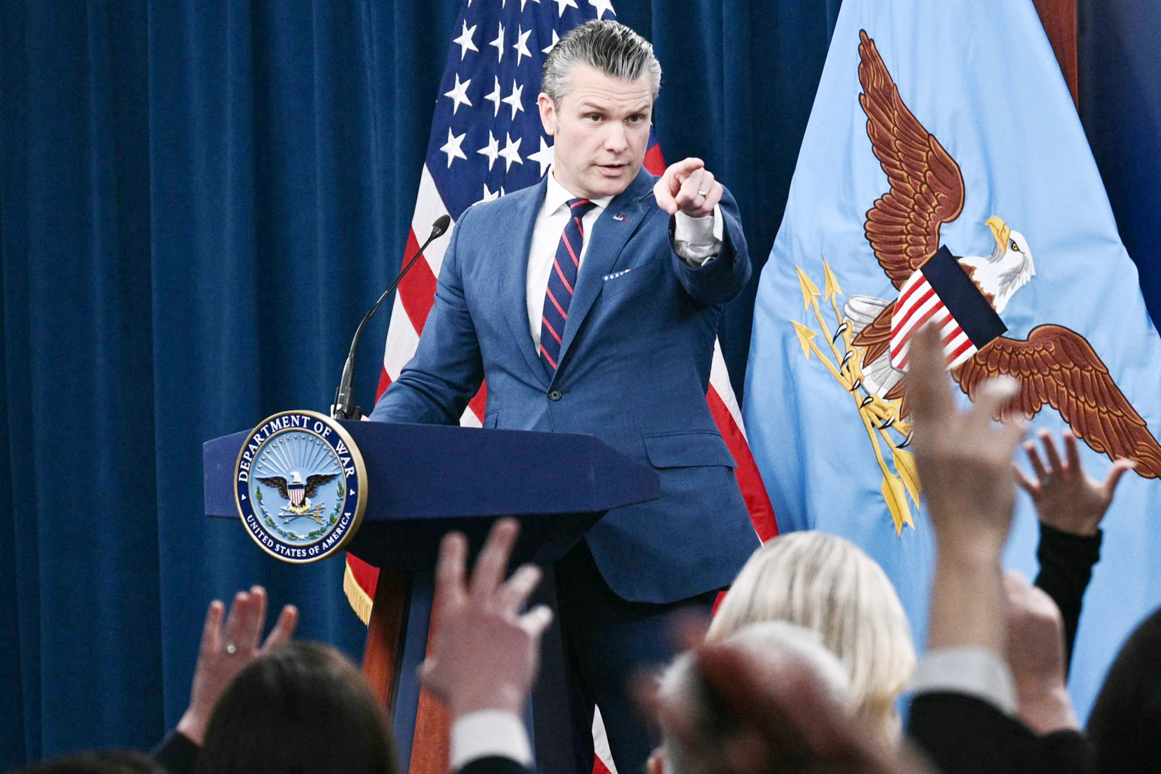 وقال هيغسيث ان اهداف الولايات المتحدة في الحرب هي تدمير التهديد الصاروخي الايراني والبحرية الايرانية وضمان الا تتمكن ايران ابدا من امتلاك سلاح نووي وهو طموح تنفيه طهران منذ زمن وردا على ذلك قال هيغسيث ان الطموحات النووية السلمية لا تحتاج الى ان تدفن تحت الجبال في اشارة الى منشاة فوردو النووية التي كانت من بين الاهداف التي قصفت في حزيران الماضي.