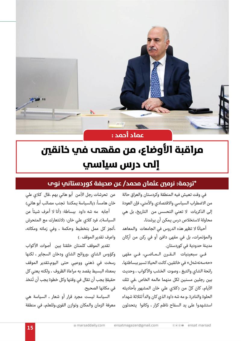 عماد أحمد : مراقبة الأوضاع، من مقهى في خانقين إلى درس سياسي