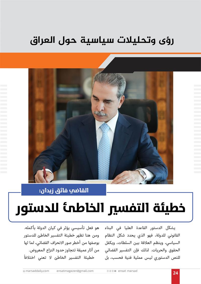 القاضي فائق زيدان: خطيئة التفسير الخاطئ للدستور