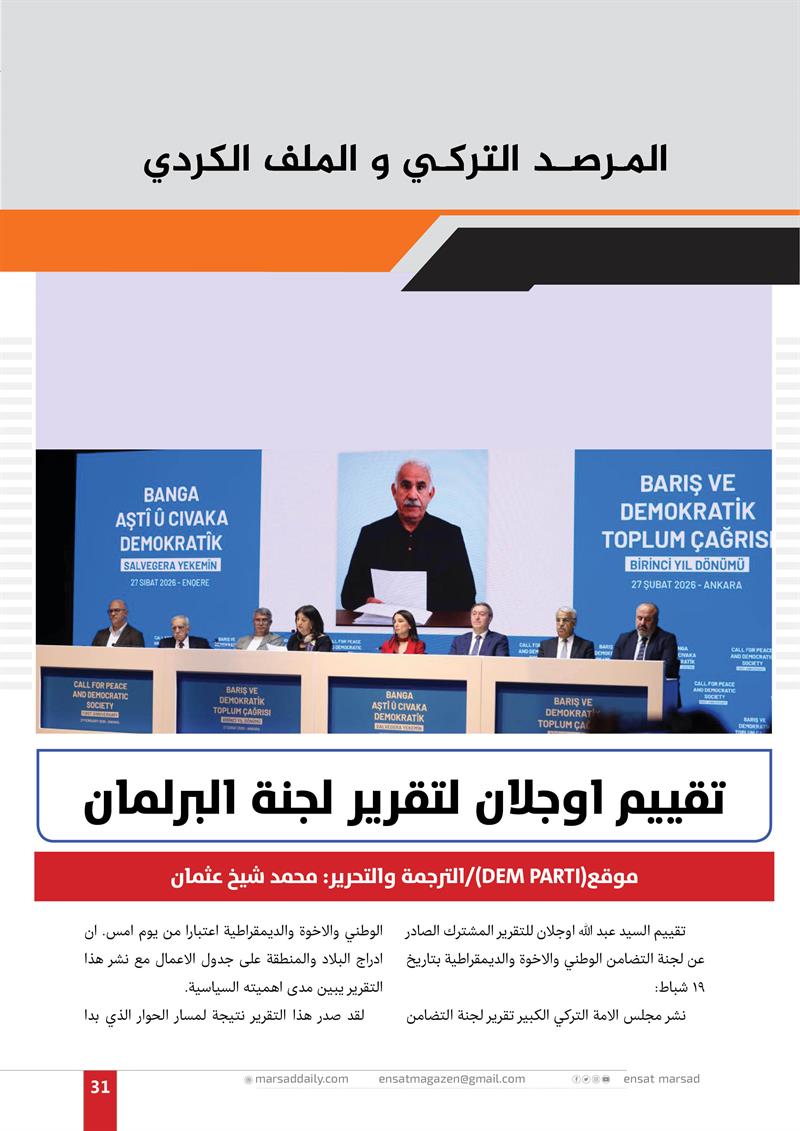 تقييم اوجلان لتقرير لجنة البرلمان