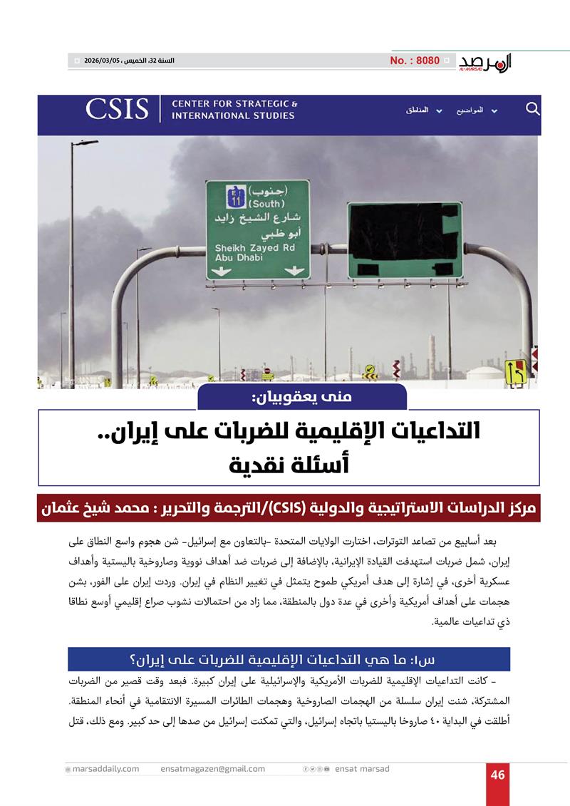 CSIS: التداعيات الإقليمية للضربات على إيران..أسئلة نقدية