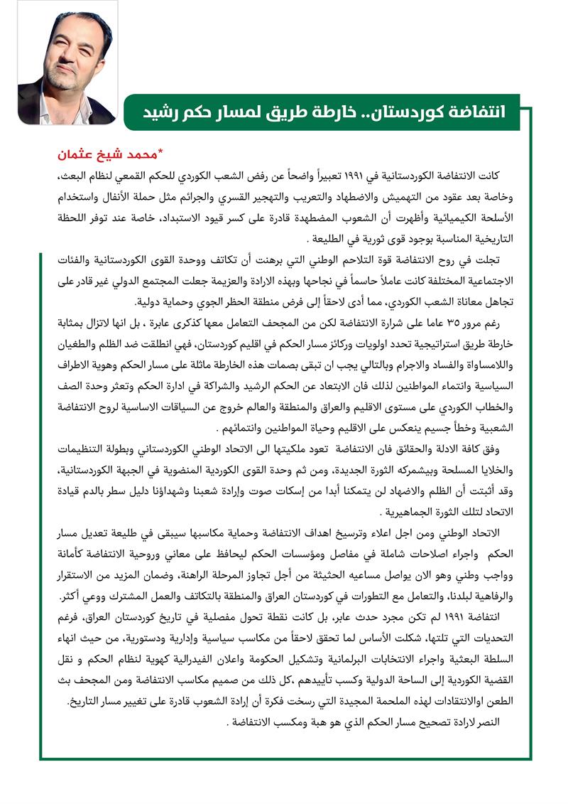 محمد شيخ عثمان:انتفاضة كوردستان.. خارطة طريق لمسار حكم رشيد