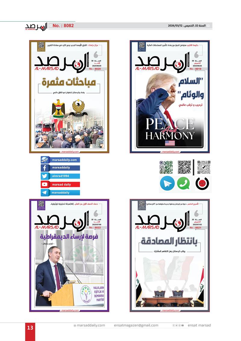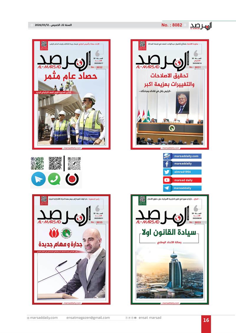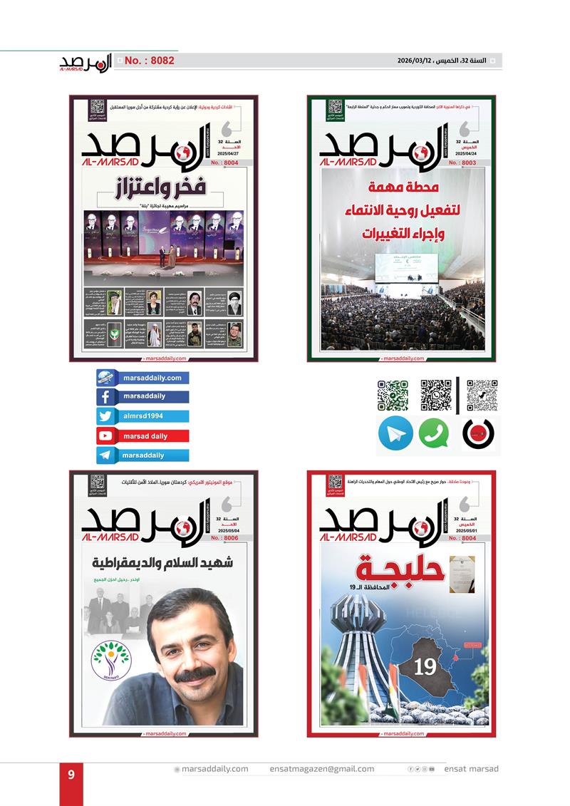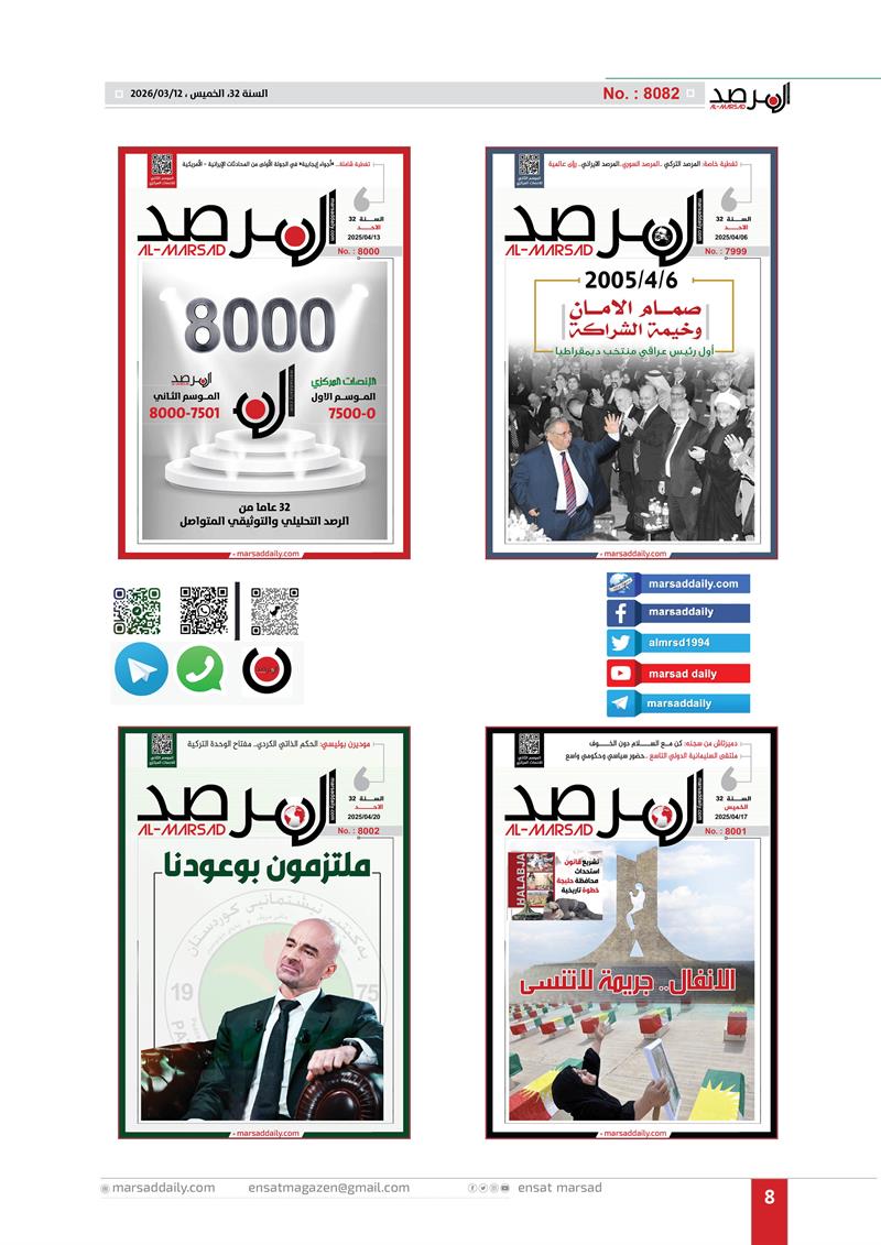 اليوم وقد اكتمل العام الـ(32) من عمر الموسوعة التحليلية التي بدات مسيرتها في 12/3/1994 لتصل عددها الى (8082) وفي هذا العدد الخاص وضعنا الغلاف الاول لكل عدد تم اصداره خلال العام الـ(32) وعناوين منصاتنا على شبكة الانترنت (marsaddaily.com) و على منصات التواصل الاجتماعي كواجهة الكترونية لمجلتنا الورقية .