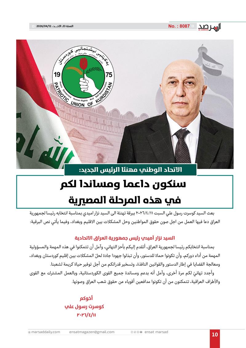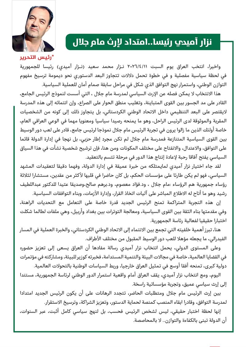رئيس التحرير : نزار آميدي رئيسا..امتداد لإرث مام جلال