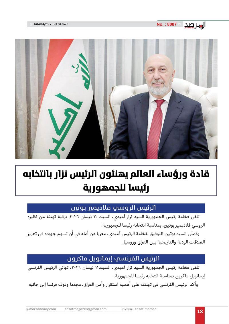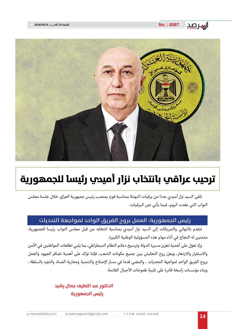 ترحيب عراقي بانتخاب نزار آميدي رئيسا للجمهورية