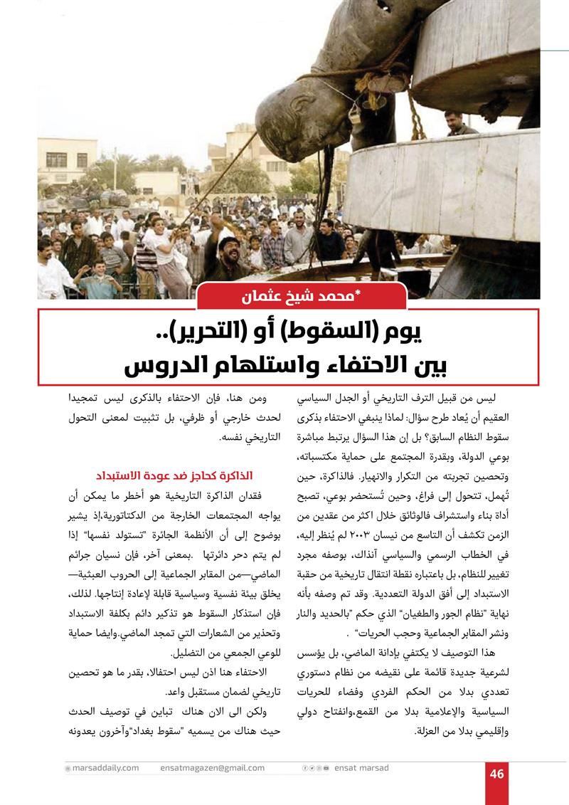 محمد شيخ عثمان : يوم (السقوط) أو (التحرير).. بين الاحتفاء واستلهام الدروس
