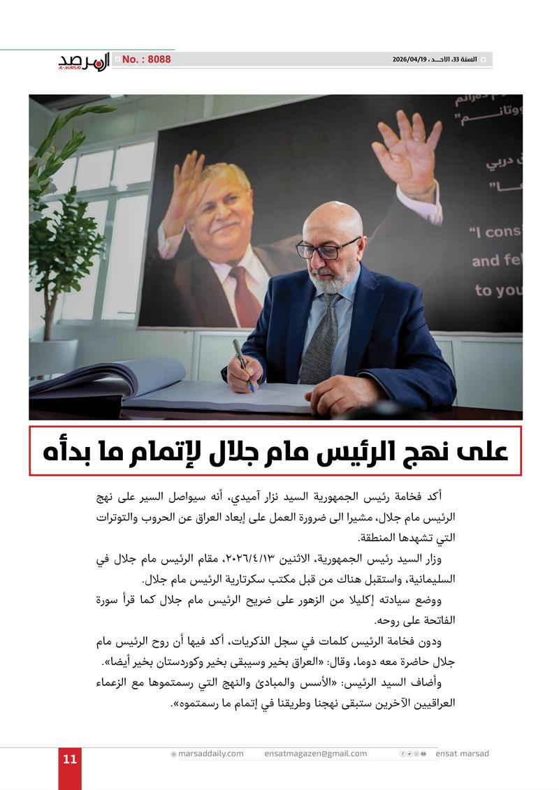 الرئيس نزار..على نهج الرئيس مام جلال لإتمام ما بدأه