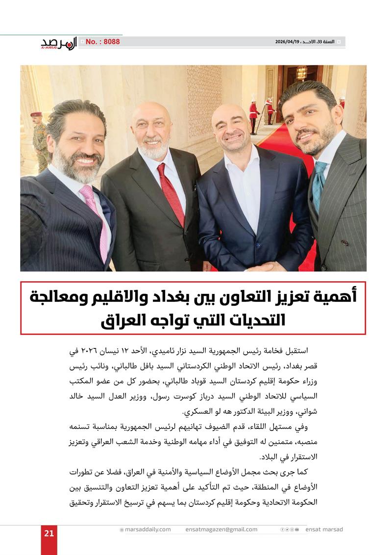 أهمية تعزيز التعاون بين بغداد والاقليم ومعالجة التحديات التي تواجه العراق