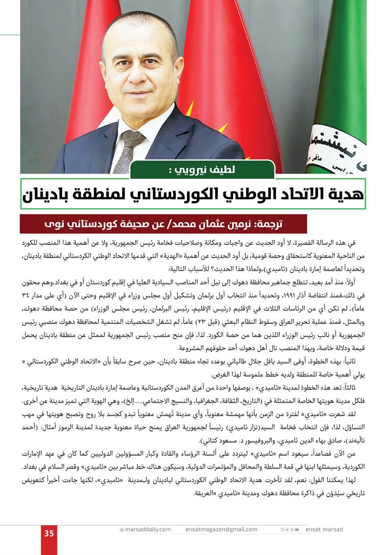 لطيف نيرويي : هدية الاتحاد الوطني الكوردستاني لمنطقة بادينان