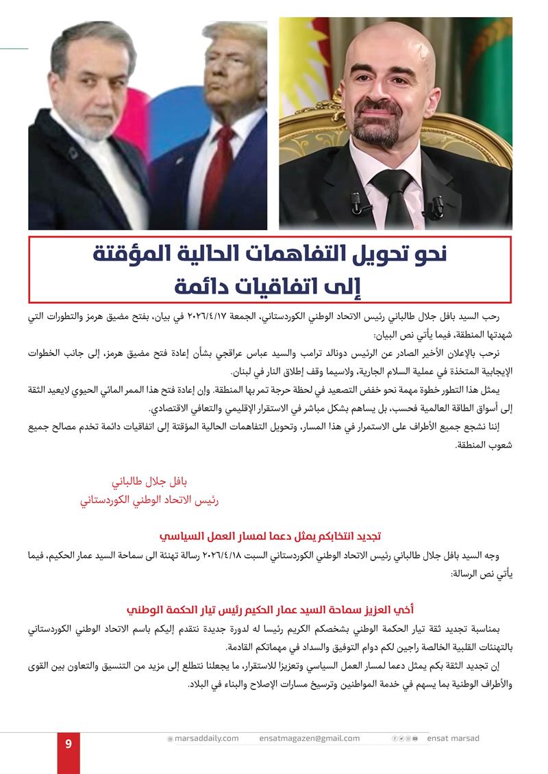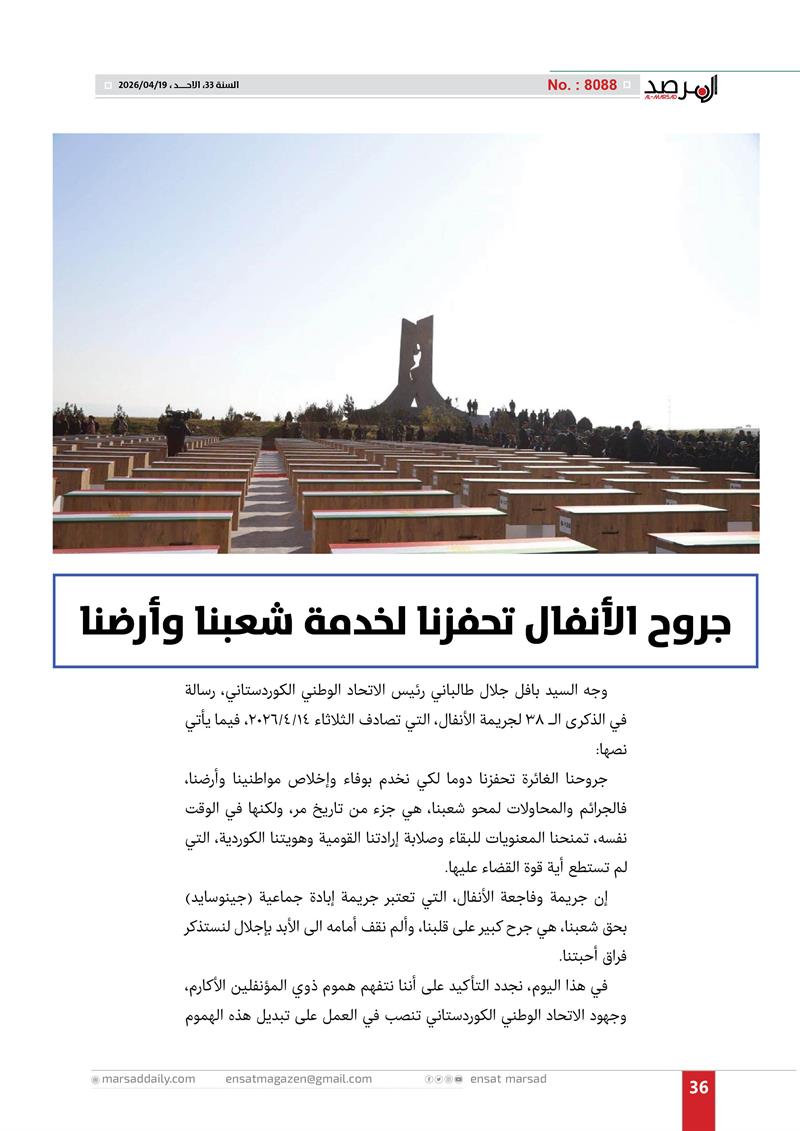 برقيات..جروح الأنفال تحفزنا لخدمة شعبنا وأرضنا